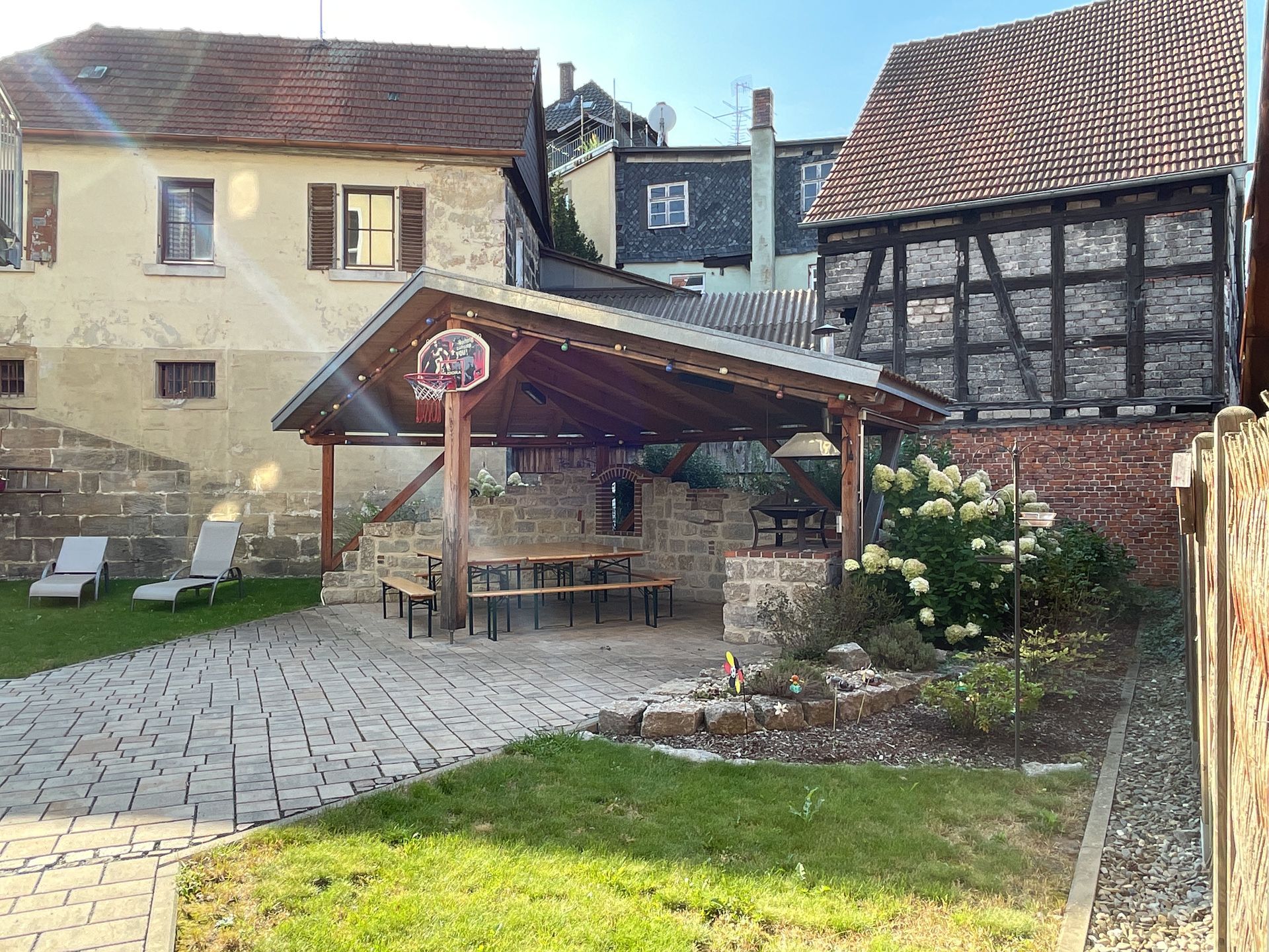 Es gibt einen Grill-Platz mit Dach.